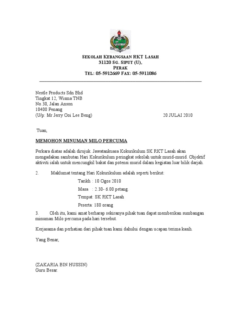 Surat Mohon Sumbangan Sesuai Menjadi Bahan Rujukan Sekolah Kebangsaan Sungai Terap Badan Studocu